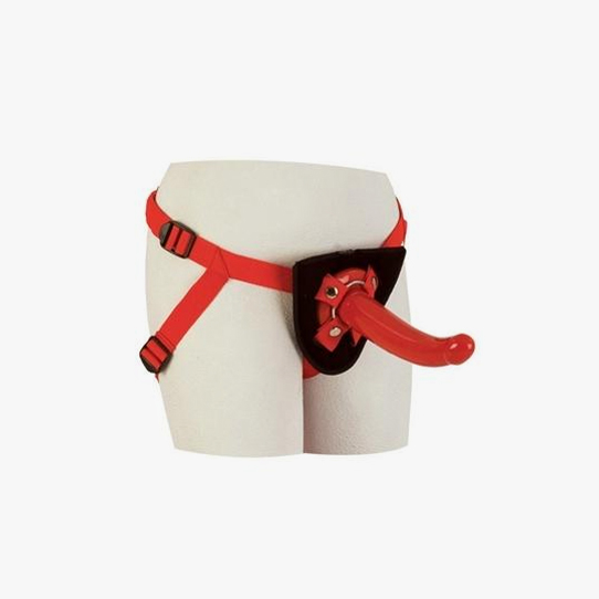 Strap it up! Red Rider is adjustable, comfortable and durable. This secure universal harness comes with a removable G curved dong. The fully adjustable waist and thigh straps mean that this harness will fit most. The removable slim dong measures 7 inches long. and this padded, soft harness is compatible with most probes. This is your ticket to ride!